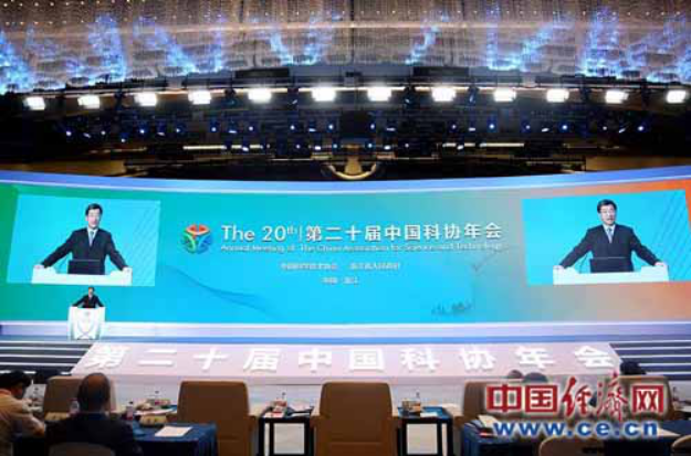 中国科协党组书记、常务副主席、书记处第一书记怀进鹏在第二十届中国科协年会闭幕式上致辞。